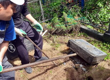 Следующим этапом было облагораживание цветников. Мы заполнили их грунтом, который сразу же опрыскали удобрениями. Это позволило практически сразу же получить зеленеющую траву на могилах.