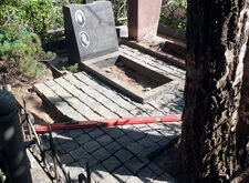На фотографиях ниже видно промежуточное состояние места захоронения после укладки наземного покрытия и восстановления цветника.